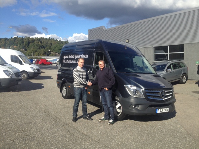 Igår fick jag hämta den Sprinter jag skall prova under en vecka. Det är alltid en speciell känsla att hämta en bil som är helt ny, min stod på 33km vid överlämnandet. Först fick jag en rundvandring med säljaren där vi tittade runt i bilhallen på Bilgruppen i Lund. Därefter berättade han om nyheterna på Sprintern där sidvindsassisten nog är den säkerhetsfunktion som jag tror man kommer att ha nytta av flest gånger. Denna typ av skåpbilar har tidigare varit mer eller mindre känsliga för sidovind, så jag hoppas det kommer att blåsa i veckan.
