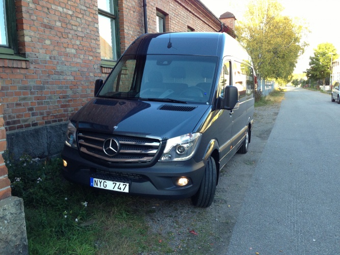 Under fredagen var det inte så mycket åkning, men vi kände lite på varann (jag & Sprintern). Den går riktigt fint och lugnt. Men det är bra vrid i motorn det är absolut inga problem att åka längre sträckor i den här. Och den ser ju snygg ut med kromgrill och gråmetalic samt aluminiumfälgar.